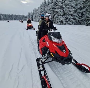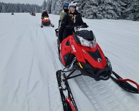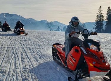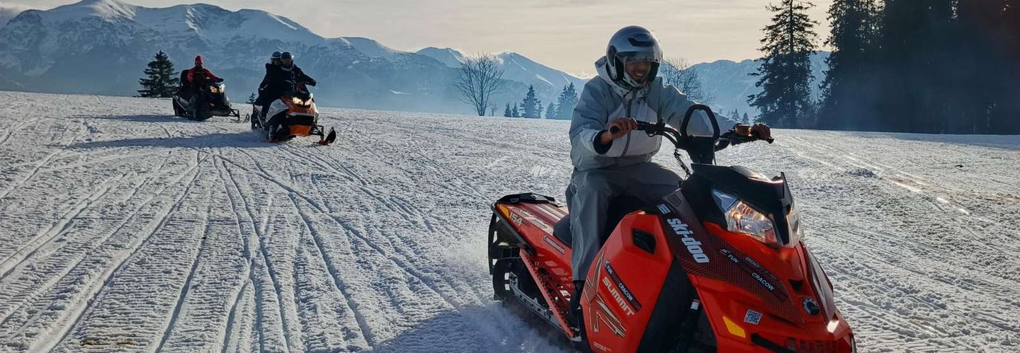 Feel the thrill of gliding through snowy landscapes on a high-speed snowmobile ride through Tatra.