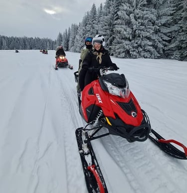 Feel the thrill of gliding through snowy landscapes on a high-speed snowmobile ride through Tatra.