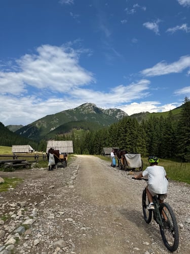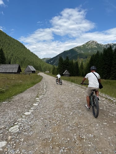 Start with a scenic e-bike ride through the Chocholowska Valley, one of the most picturesque valleys in the Tatras. Surrounded by majestic peaks, mountain meadows, and dense forests, this route is perfect for nature lovers of all levels. Thanks to the support of electric power, the ride is smooth and enjoyable, letting you fully take in the incredible landscapes. In spring and summer, the valley blooms with colorful alpine flowers, while autumn transforms it into shades of gold and orange.