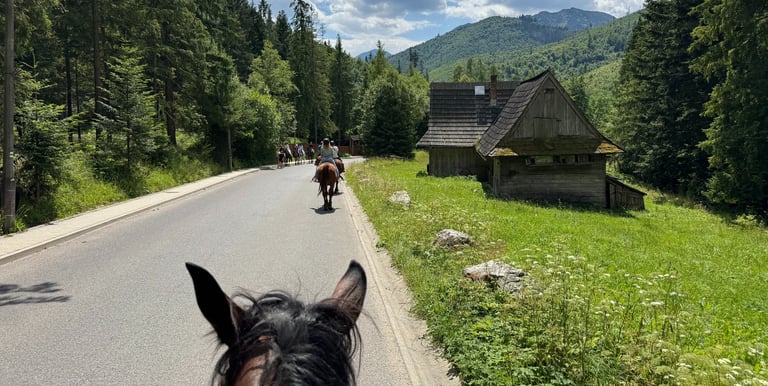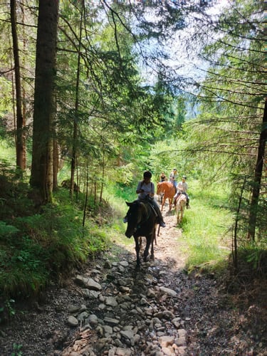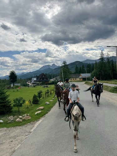 Discover the Tatra Mountains on a full-day adventure from Krakow! Enjoy a scenic horseback ride through forests, rivers, and mountain trails, explore the local village, taste traditional oscypek cheese, and unwind in relaxing thermal baths - the perfect mix of adventure and relaxation.