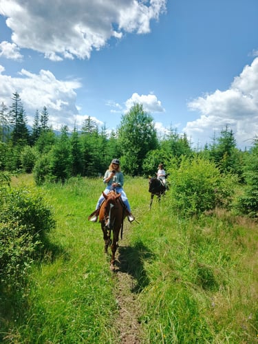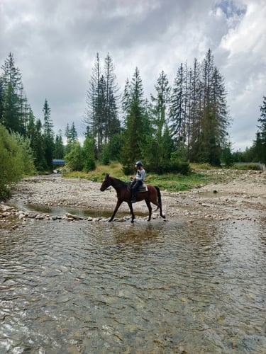 Next, you will arrive at a horse stable in Zakopane for your horseback riding lesson. The session is tailored to your experience level, so even if you have no prior riding experience, there’s nothing to worry about! After your lesson, enjoy a scenic horseback ride through picturesque mountain trails, riding along forests, across rivers, and open meadows with breathtaking views of the Tatra Mountains. (Routes may vary depending on weather conditions.)